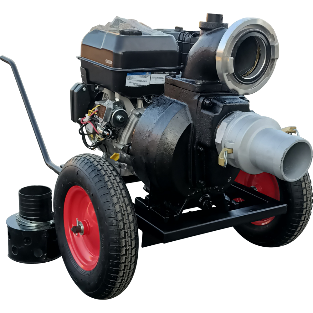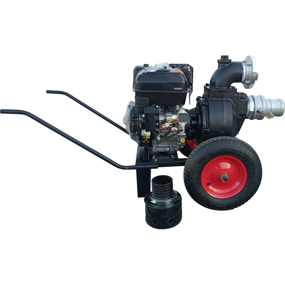 Motopompa este montata pe cadru robust, tip roaba, usor pentru manevrare si trasport.